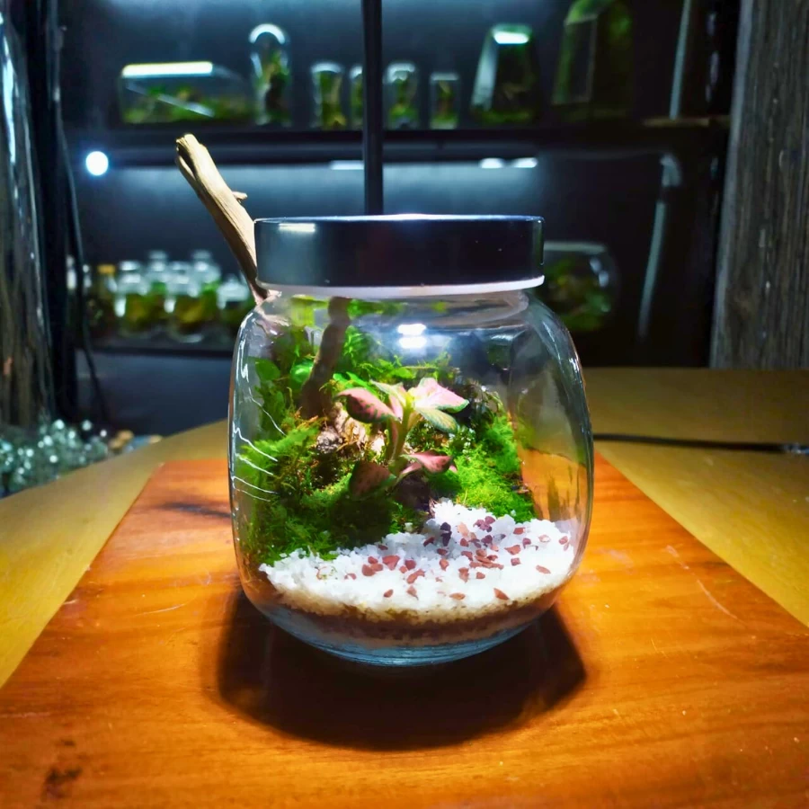 Bring the calming beauty of nature into any space with our Mini Forest Jar Live Terrarium – Corporate Gift Edition. Designed with live moss, fittonia plants, natural soil layers, and driftwood accents, this terrarium creates a miniature forest ecosystem inside a crystal-clear jar. Its compact size makes it a perfect desk companion, corporate gift, or home décor piece. Completely handcrafted and low-maintenance, it adds fresh greenery and natural elegance to any interior—ideal for gifting employees, clients, or nature lovers.
