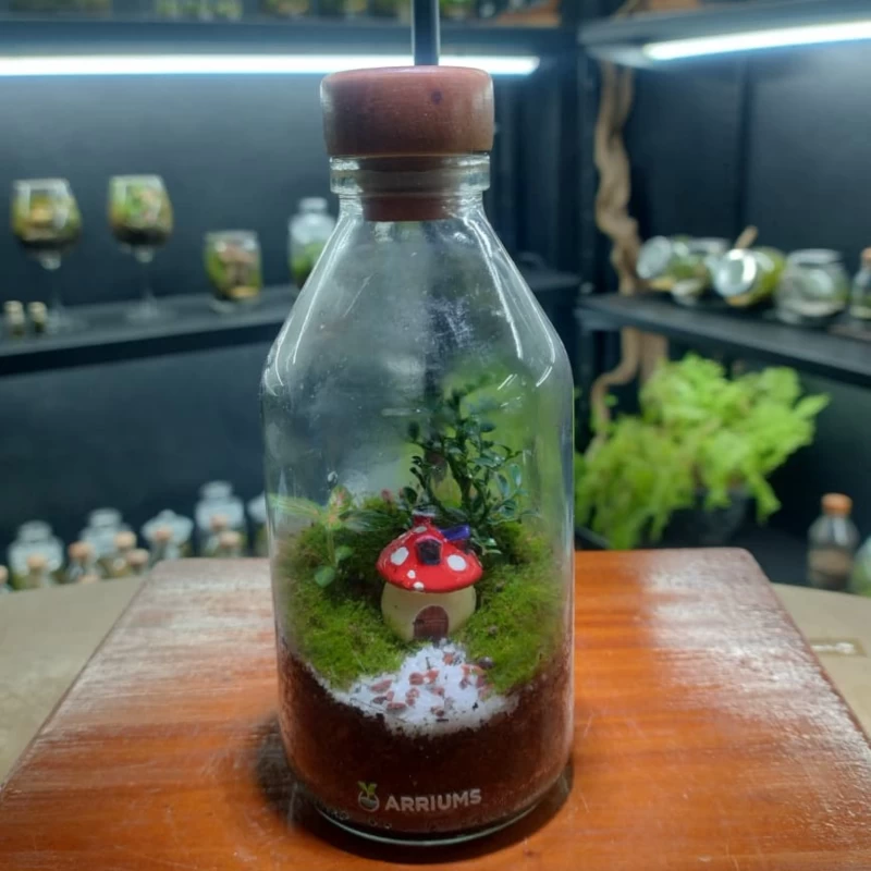 your workspace or home with our Mini Mushroom House Live Moss Terrarium.
