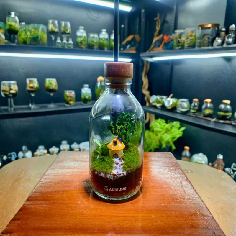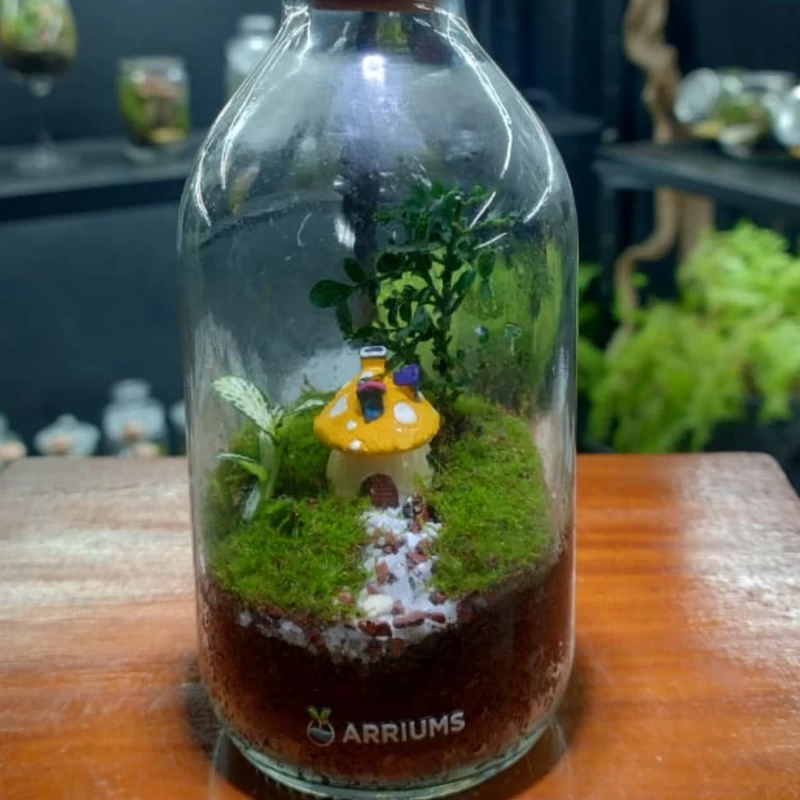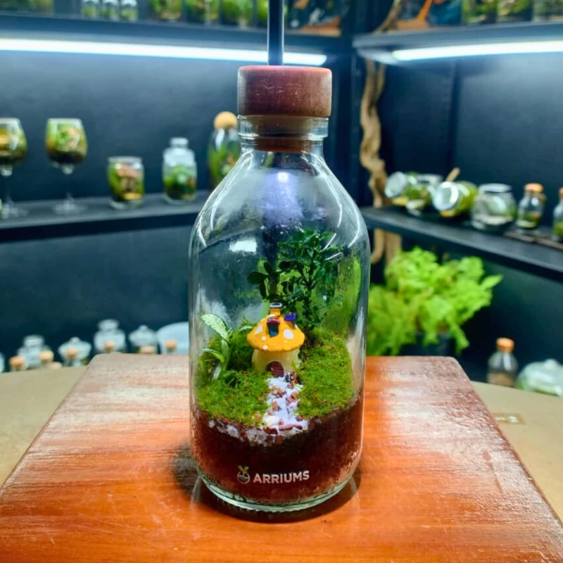 Mini Mushroom House Live Moss Terrarium – Glass Bottle Edition V2