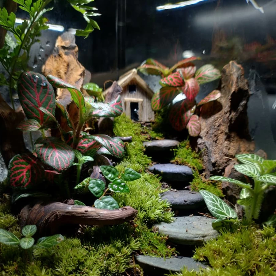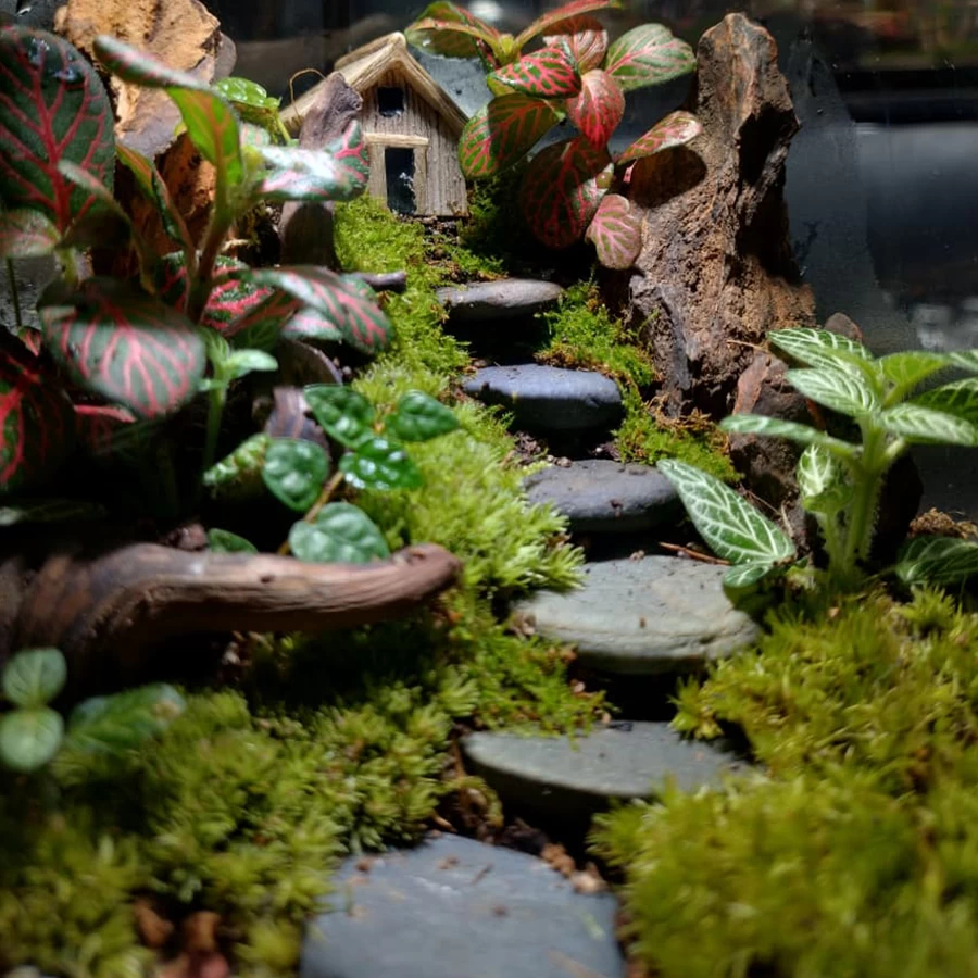 Fittonia, moss, and miniature foliage plants