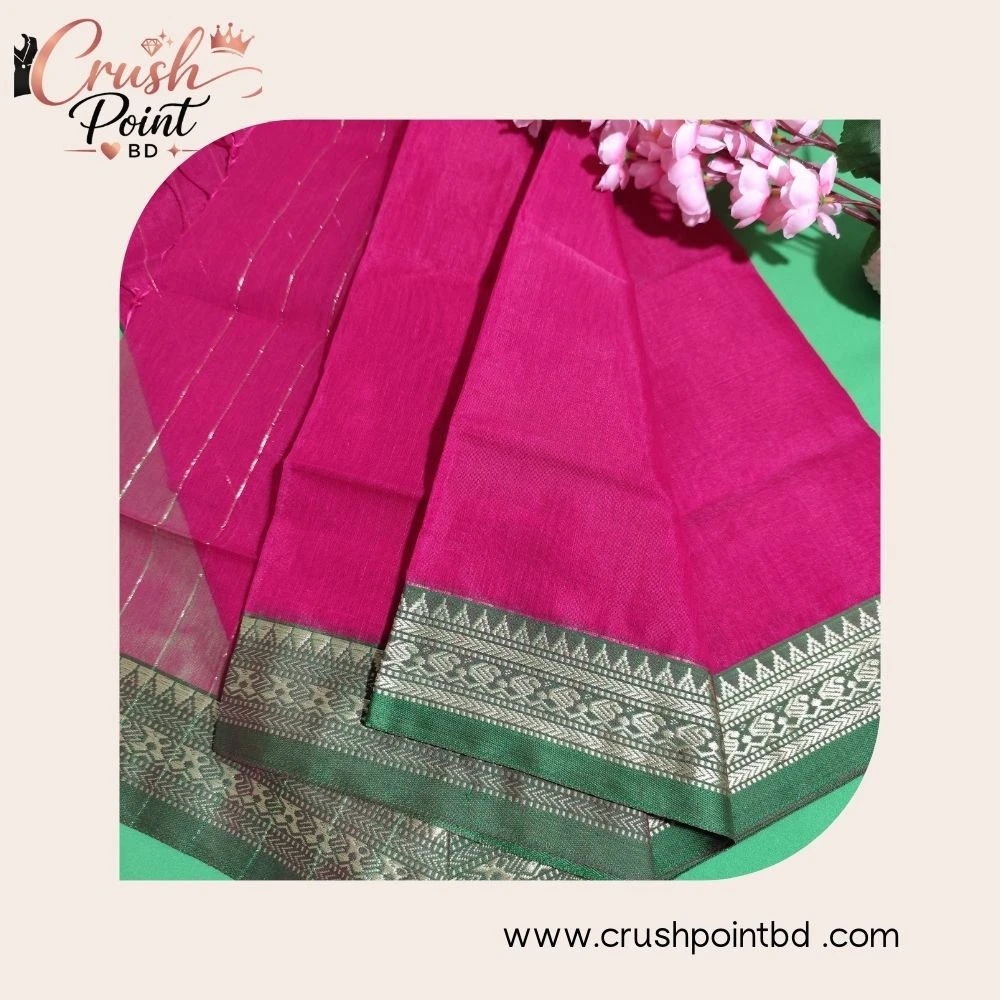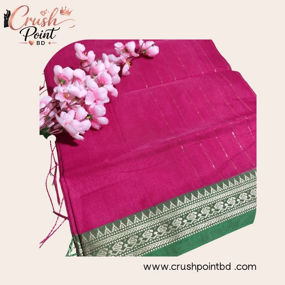 এই হাফ সিল্ক শাড়িটি আরাম ও আভিজাত্যের এক সুন্দর মেলবন্ধন। নরম টেক্সচার ও হালকা উজ্জ্বলতা শাড়িটিকে পরতে যেমন স্বাচ্ছন্দ্য দেয়, তেমনি লুকেও আনে রাজকীয় ভাব। উন্নতমানের হাফ সিল্ক কাপড়ে তৈরি হওয়ায় শাড়িটি সহজে বহনযোগ্য এবং দীর্ঘ সময় পরলেও আরামদায়ক। আকর্ষণীয় বর্ডার ও সূক্ষ্ম ডিজাইন শাড়িটির সৌন্দর্যকে আরও বাড়িয়ে তুলেছে। অফিস পার্টি, পারিবারিক অনুষ্ঠান কিংবা উৎসবের জন্য এটি একটি আদর্শ পছন্দ।